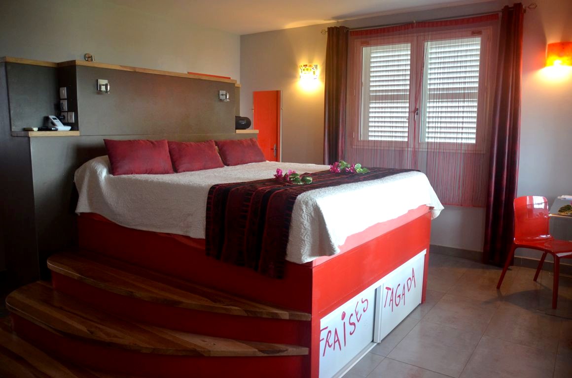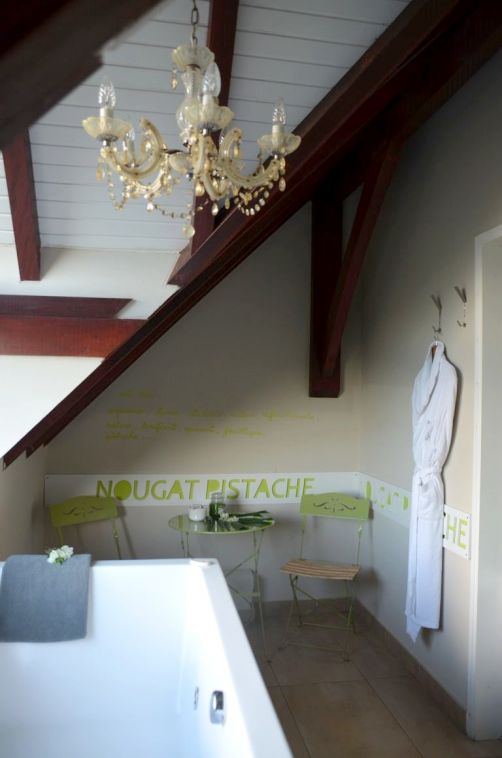 Les chambres-suites se situent dans le bâtiment principal de l’hôtel. Chaque suite a été pensée autour d’une couleur principale associée à un bonbon : Fraise Tagada, Réglisse, ou encore Nougat Pistache.