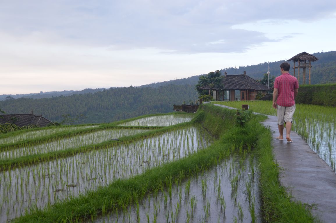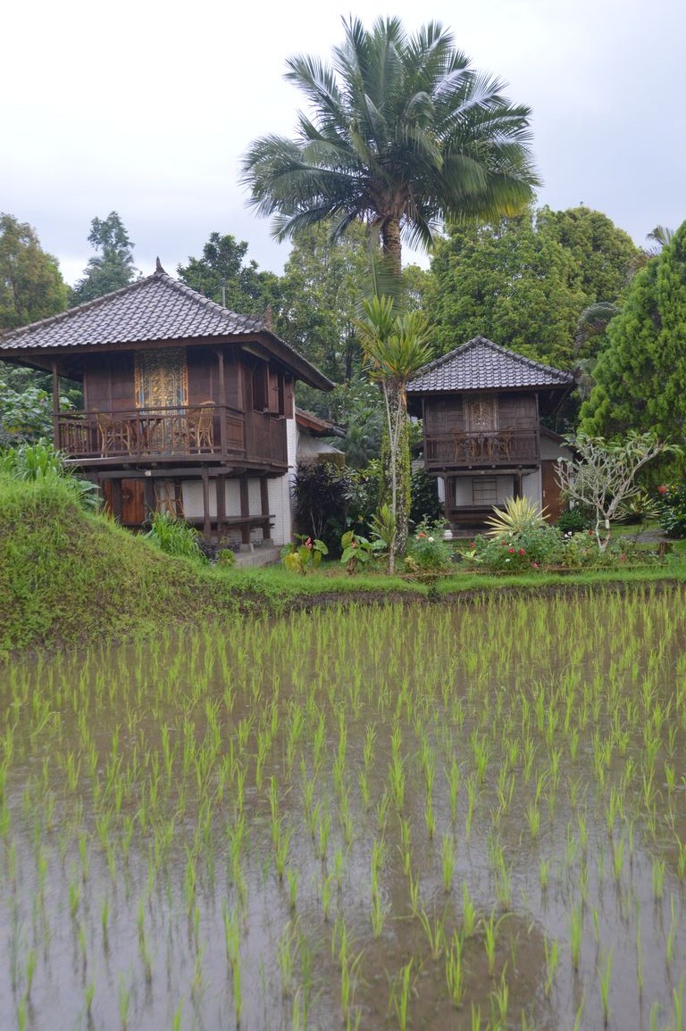 Retour sur la terre ferme, direction notre hôtel (ou plutôt cottage) pour ce soir, Puri Lumbung, situé en plein cœur de la forêt de Munduk. Notre petit cottage, tout en bois, se trouve juste en bordure des rizières… La vue est magnifique, tout simplement ! En plus, le domaine est gigantesque et, malgré la pluie à notre arrivée (qui est assez vite partie), nous avons pu nous promener au milieu des rizières et de la forêt, quasiment seuls au monde (ce n’est pas vraiment la pleine saison là bas, la saison des pluies s’y faisant bien plus sentir qu’ailleurs…).