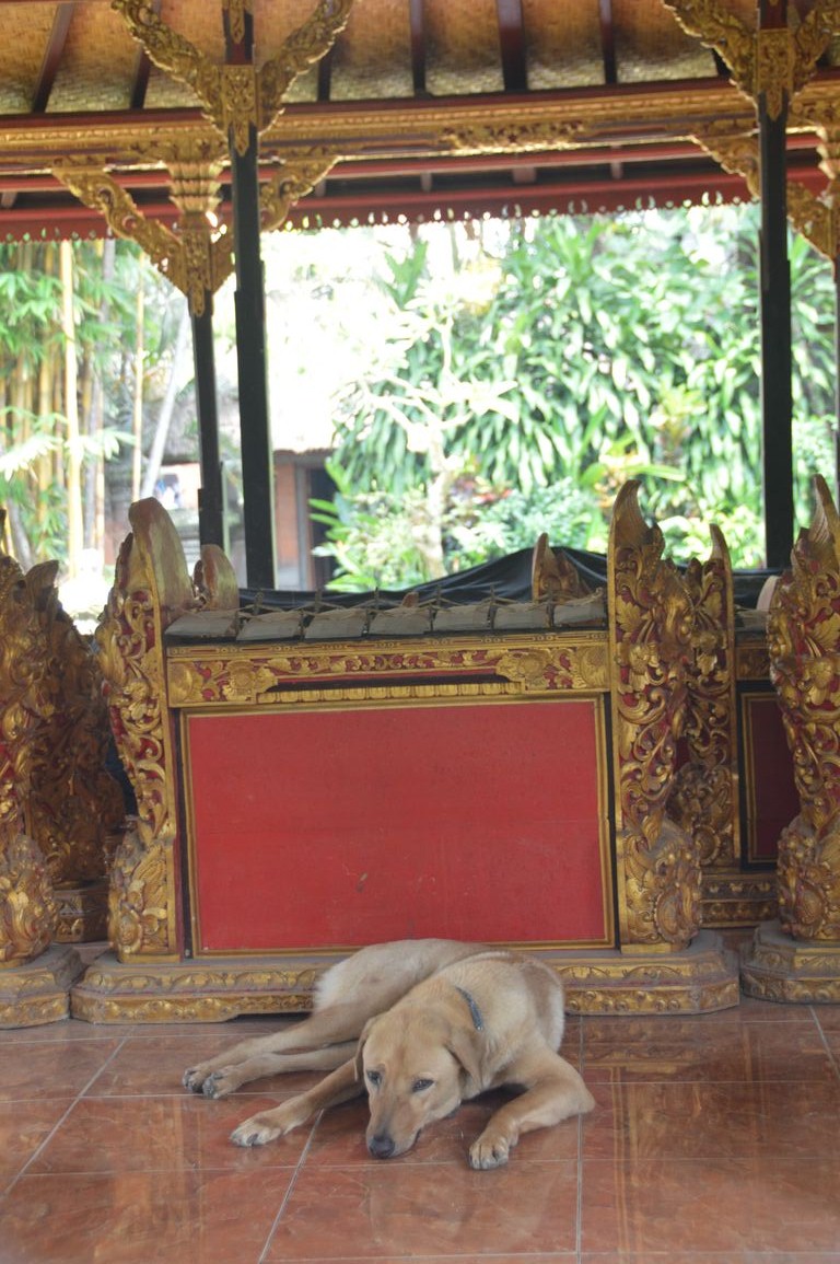 Nous continuons la visite de la ville d’Ubud par le musée d’ARMA (Agung Rai Museum of Art), qui contient une collection assez imposante de peintures balinaises, le palais royal d’Ubud (que nous avions déjà vu de nuit pour le spectacle de danse) toujours habité par le roi et sa famille, et enfin le marché local, où l’on trouve de l’artisanat mais aussi (et surtout) beaucoup de souvenirs pour avoir la panoplie du parfait touriste balinais (tshirt de la bière Bintang, sculpture en bois en forme très masculine…si vous voyez ce que je veux dire… !)