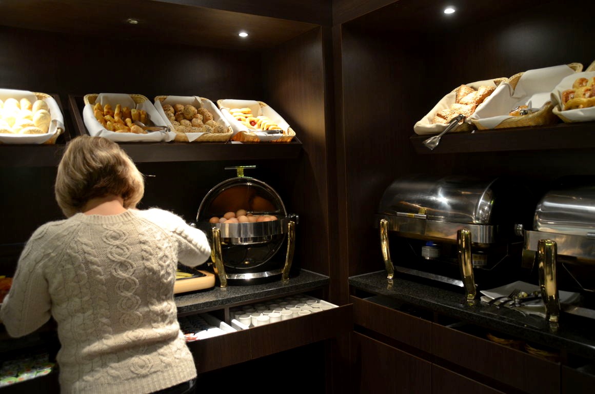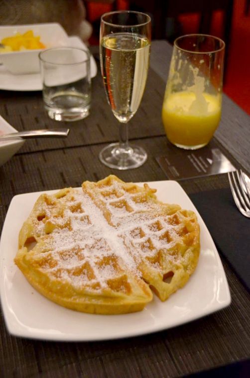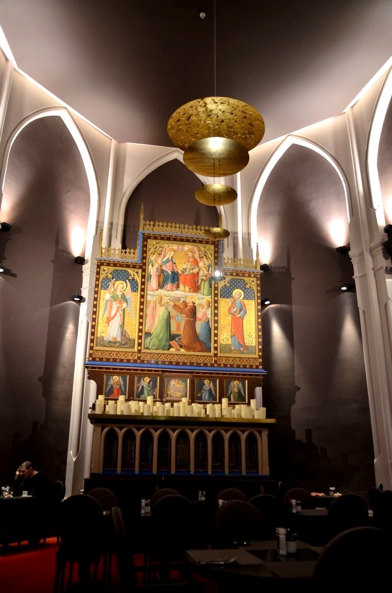 Plus loin, on arrive dans l’ancien chœur de l’église avec son autel d’origine, où se déroule le petit-déjeuner (gargantuesque, avec bulles et gaufres DYI, s’il vous plait !) : sans doute l’endroit le plus « wahou » de l’hôtel !