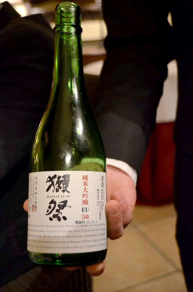 Le « vrai » saké japonais, bien moins alcoolisé, se déguste d’une toute autre manière, dans des verres à vin ou, tiède (pour faire ressortir d’autres arômes) dans des petites tasses. La maison Dassaï produit au Japon, dans la préfecture de Yamaguchi, les sakés hauts de gamme que nous dégusterons ce soir-là.