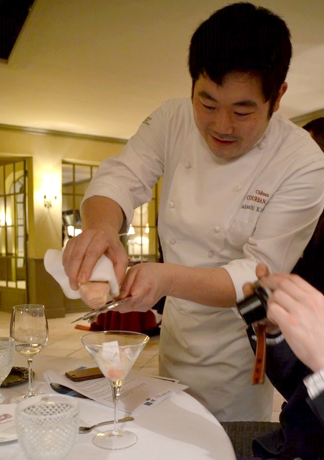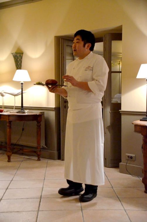 Je retrouve donc les autres convives au restaurant gastronomique de l’hôtel, La Table du Colombier, où officie le très sympathique chef japonais Takashi Kinoshita. Passionné par la cuisine française, après des études au Japon et un passage dans des maisons étoilées, celui-ci propose aujourd’hui au Château de Courban une cuisine gastronomique avec quelques touches créatives rappelant son pays d’origine.