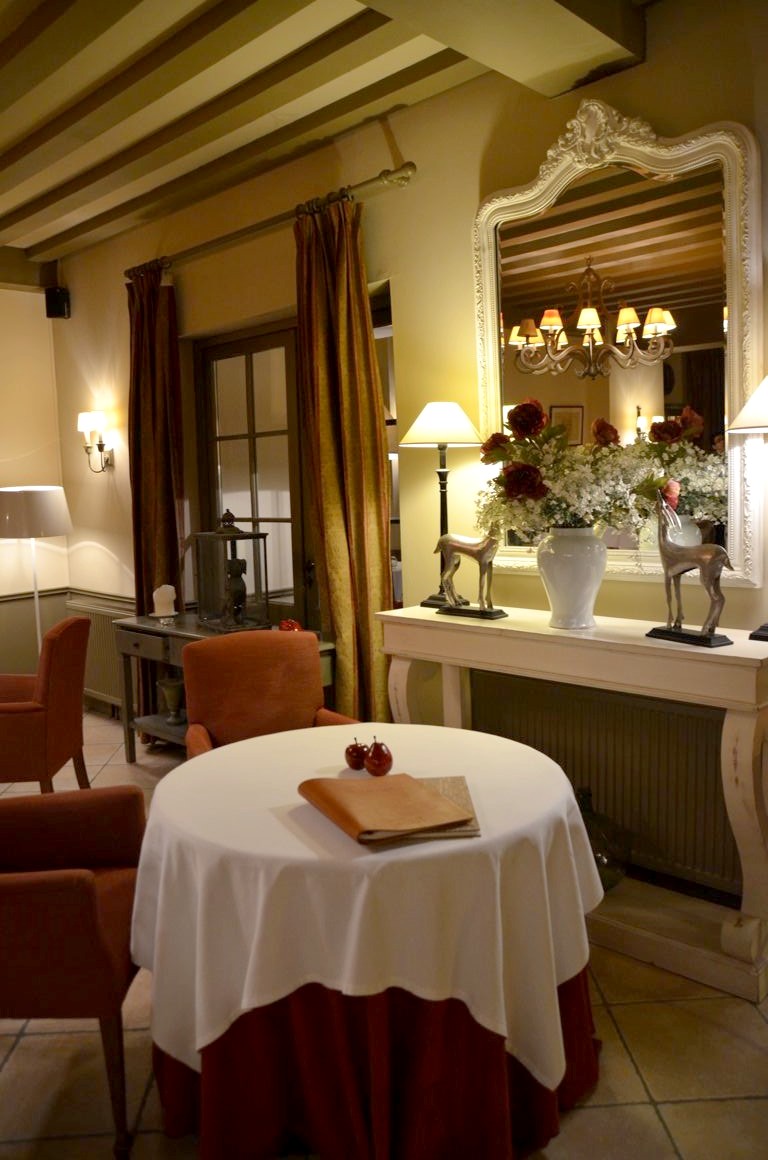Après un trajet en train plus long que prévu (pour la première fois de ma vie, j’ai raté ma correspondance à Paris à cause d’un nouveau retard de mon Thalys…), j’arrive en début de soirée au Château de Courban & Spa Nuxe, magnifique hôtel 4 étoiles, et j’ai juste le temps de prendre possession de ma – très charmante – chambre avant de commencer la dégustation. J’aurai un peu plus de temps pour faire le tour du Château demain matin !