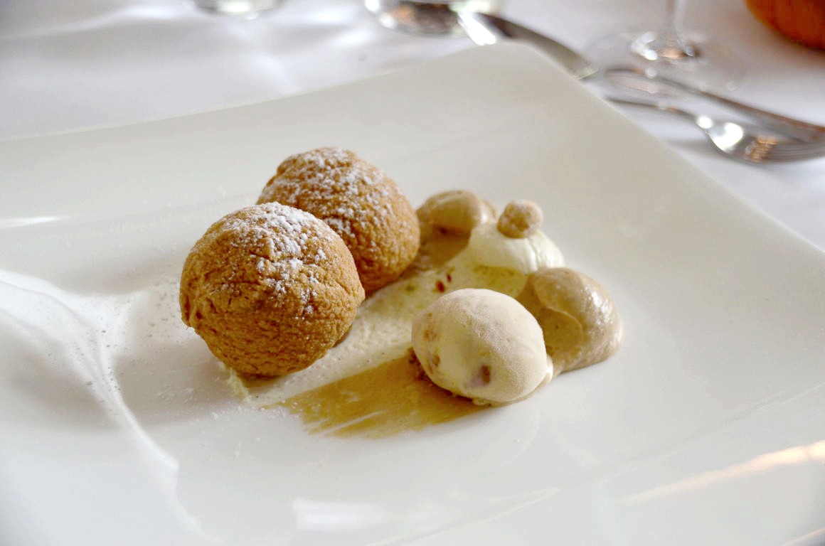 Nous continuons ensuite avec un plat de poisson, le filet de sole soufflé aux crevettes grises, tortellinis, épinard et sauce Nantua. Ce plat est plus classique mais non moins gourmand: la sole est cuite à la perfection et encore une fois, c’est la sauce qui fait toute la différence…