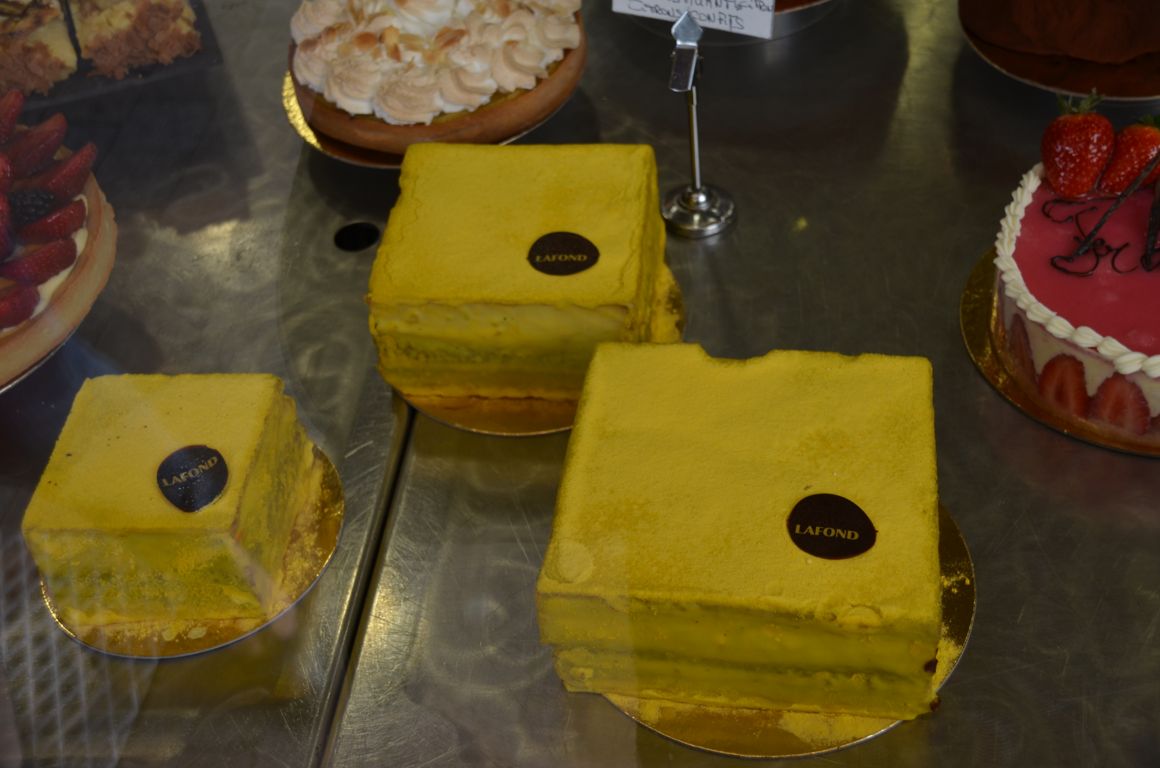 Nous remontons par la rue Carnot et faisons une petite halte chez Claude Lafond, qui a créé le gâteau TAP, un gâteau jaune cubique qui reprend la forme de l’auditorium de Poitiers créé par l’architecte Joao Luis Carrilho de Graça.