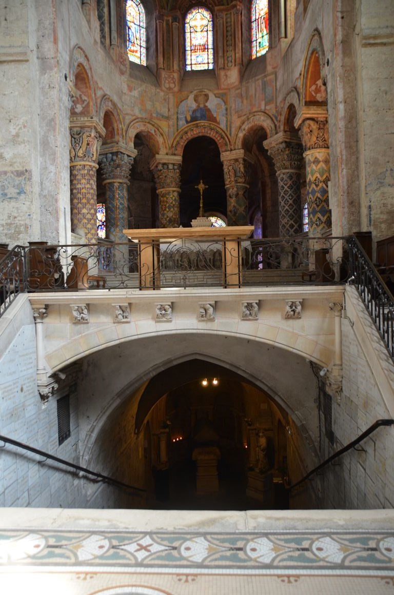 En bas de la rue, nous nous arrêtons rapidement à l’Eglise Sainte-Radegonde, qui a la particularité d’accueillir les reliques de pas moins de 3 saints dans sa crypte: Sainte-Radegonde, mais aussi Sainte-Disciole et Sainte-Agnès.