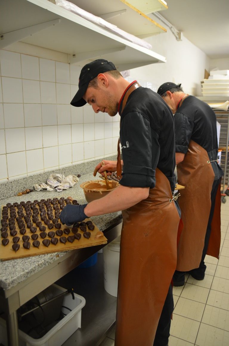 Leurs chocolats sont produits sur place, dans l’atelier situé en haut de la boutique. Miam !