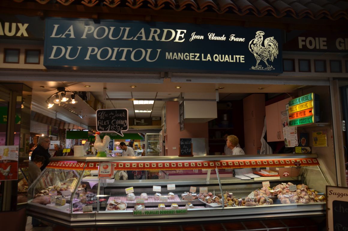 On y trouve toutes les spécialités locales, comme les melons et fromages de chèvre du Poitou, le pâté Farci Poitevin, le Tourteau Fromager (gâteau volontairement brûlé),…