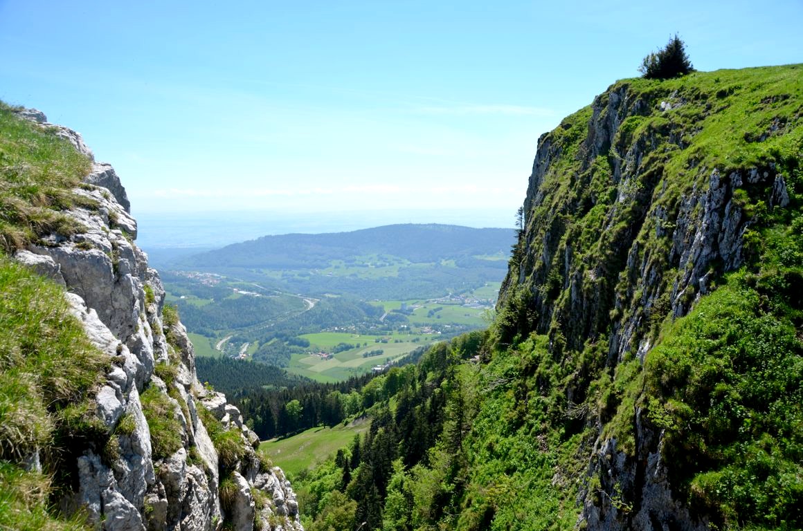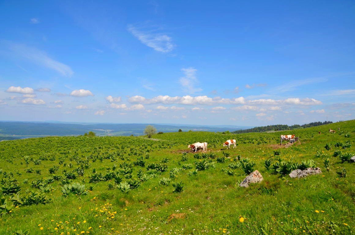 Une courte balade (au milieu des vaches !) nous emmène à un magnifique panorama face à la Suisse voisine. Si vous avez bonne vue, vous pourrez même aperçevoir au loin le Lac Léman et le jet d’eau de Genève.