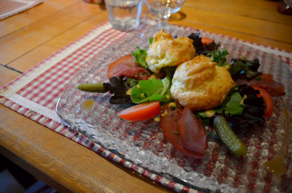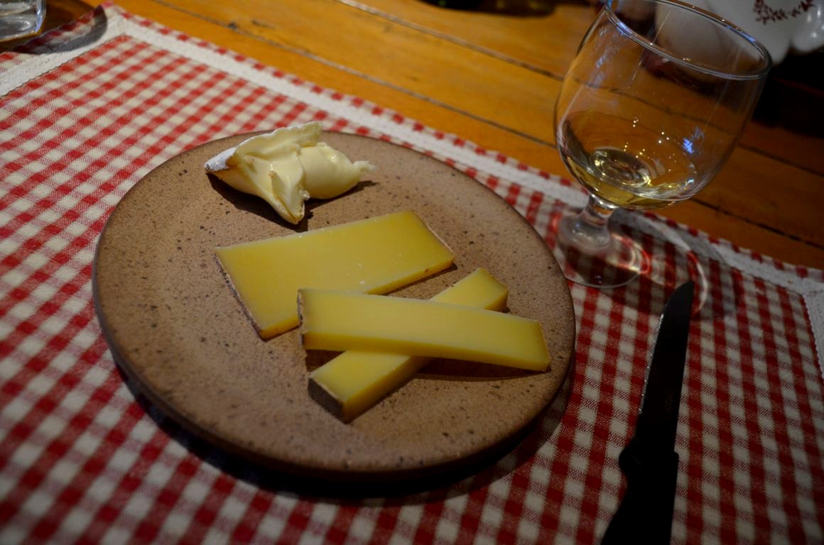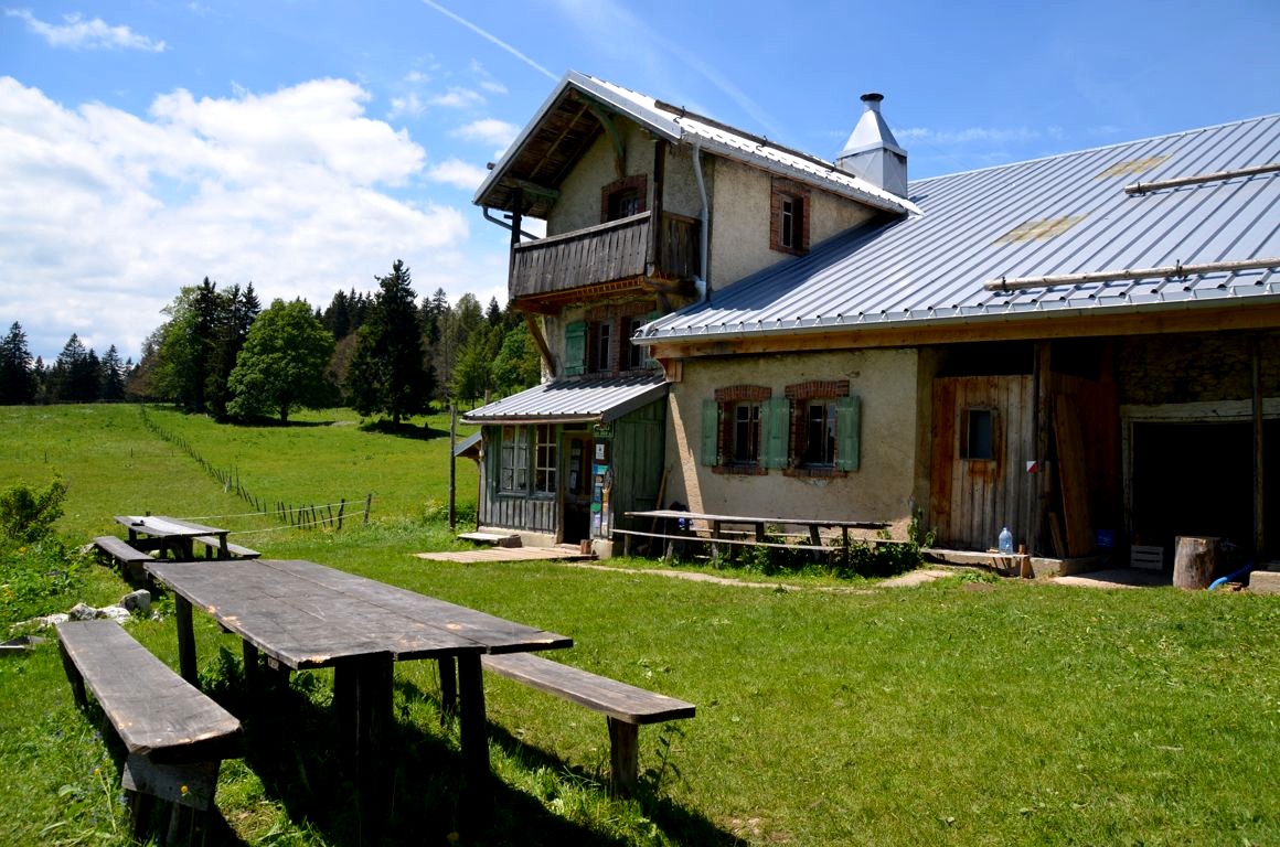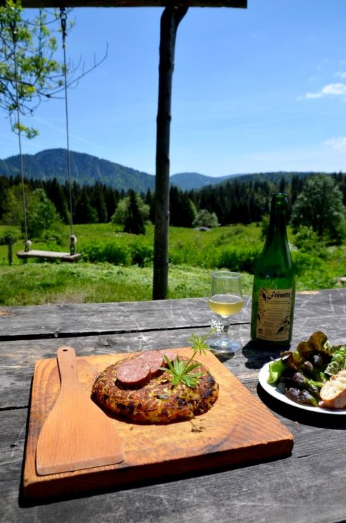 Après notre balade, nous redescendons en voiture vers le chalet d’alpage La Petite Echelle. Le maître des lieux, Norbert, est berger. Il accueille touristes et locaux dans son petit chalet situé juste à la frontière suisse, et propose de copieux plats à base de produits locaux. Un repas simple, mais qui nous ravi.