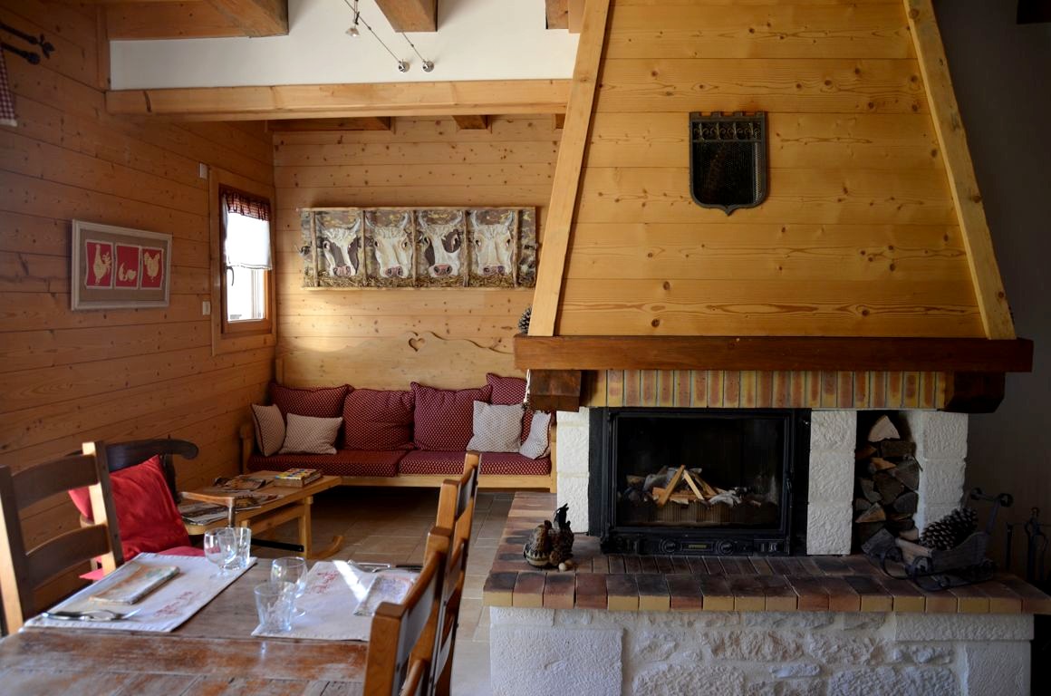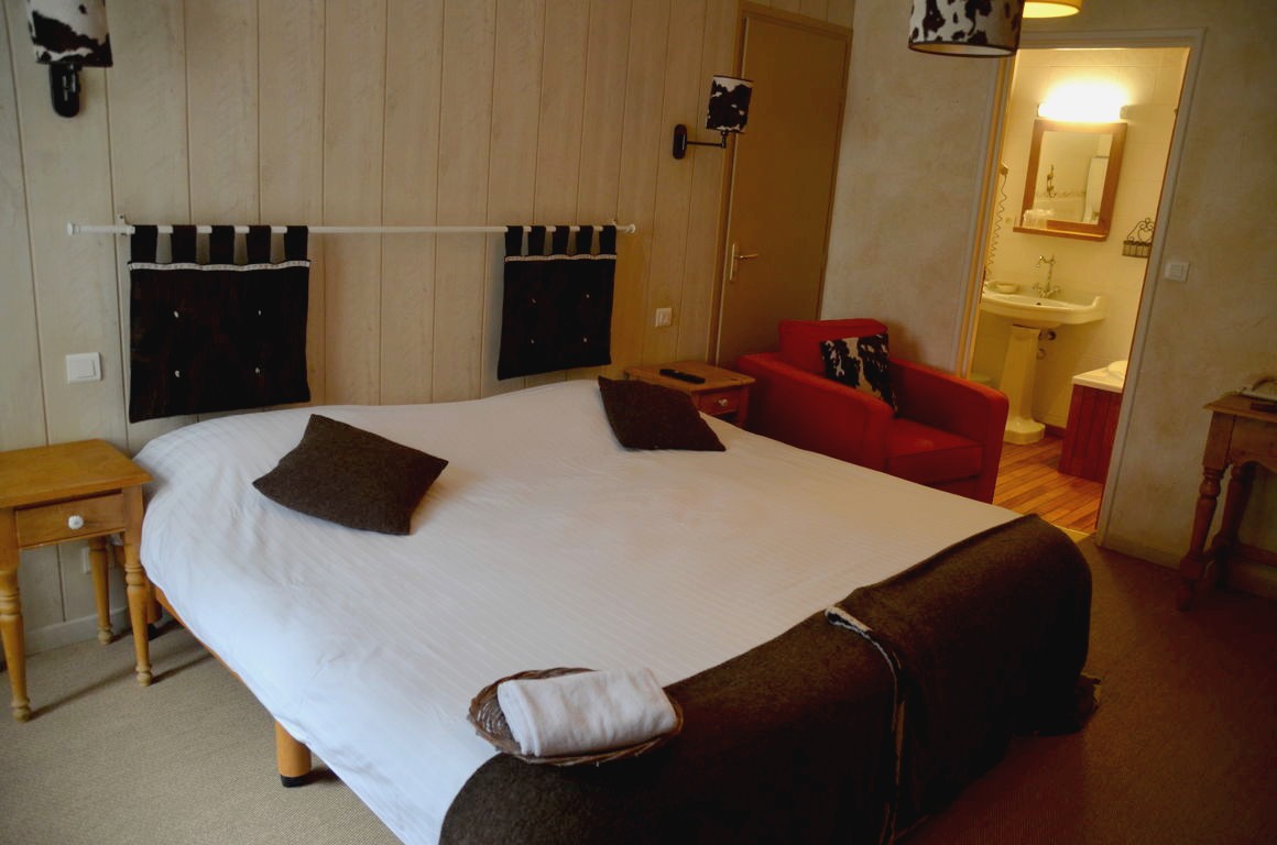Ambiance chalet montagnard dans notre chambre, où nous nous reposons un peu avant de prendre place à la table d’hôte, pour notre première ration de fromage du séjour. Une étape gourmande et conviviale que je vous recommande !