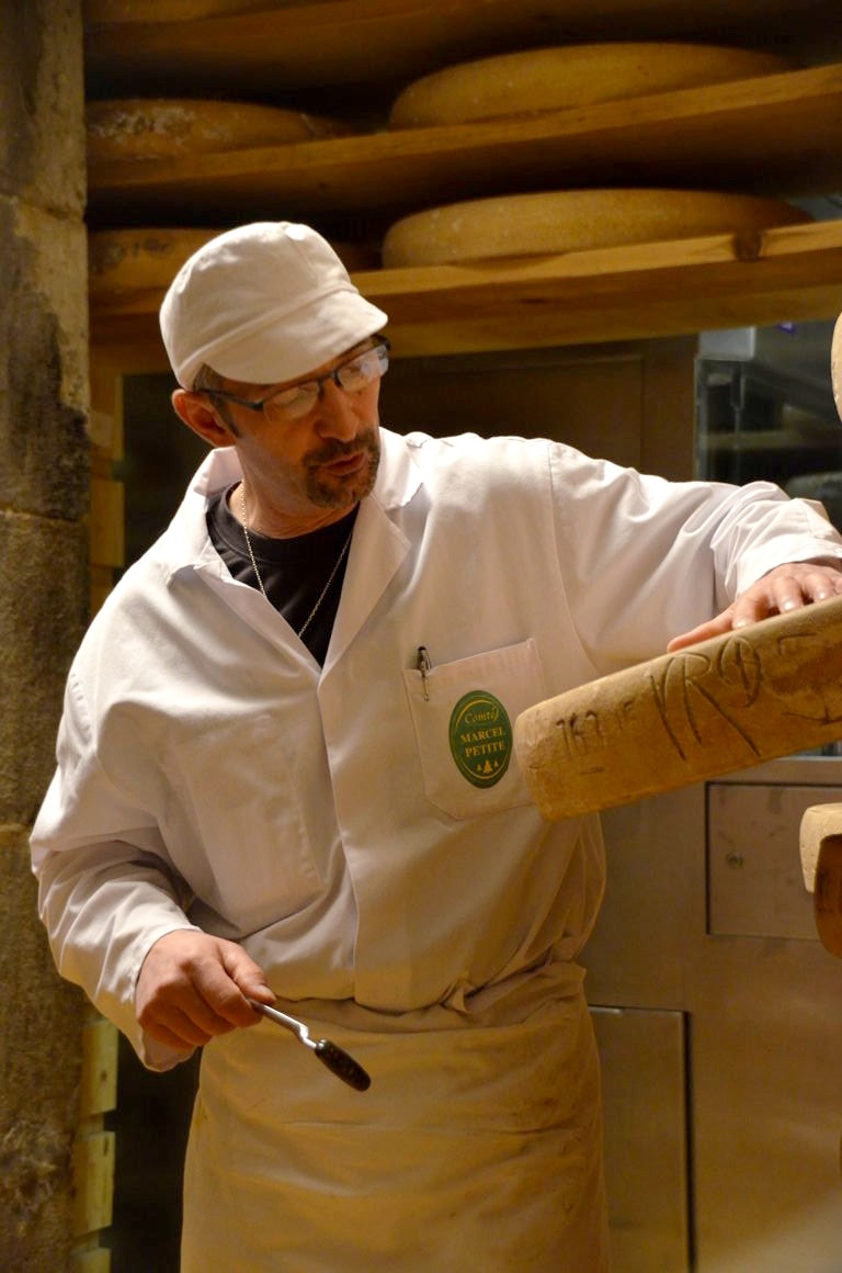 Direction la Fruitière de Bouverans, où nous reçoit le passionné fromager Anthony Perrin (visite guidée sur réservation uniquement).