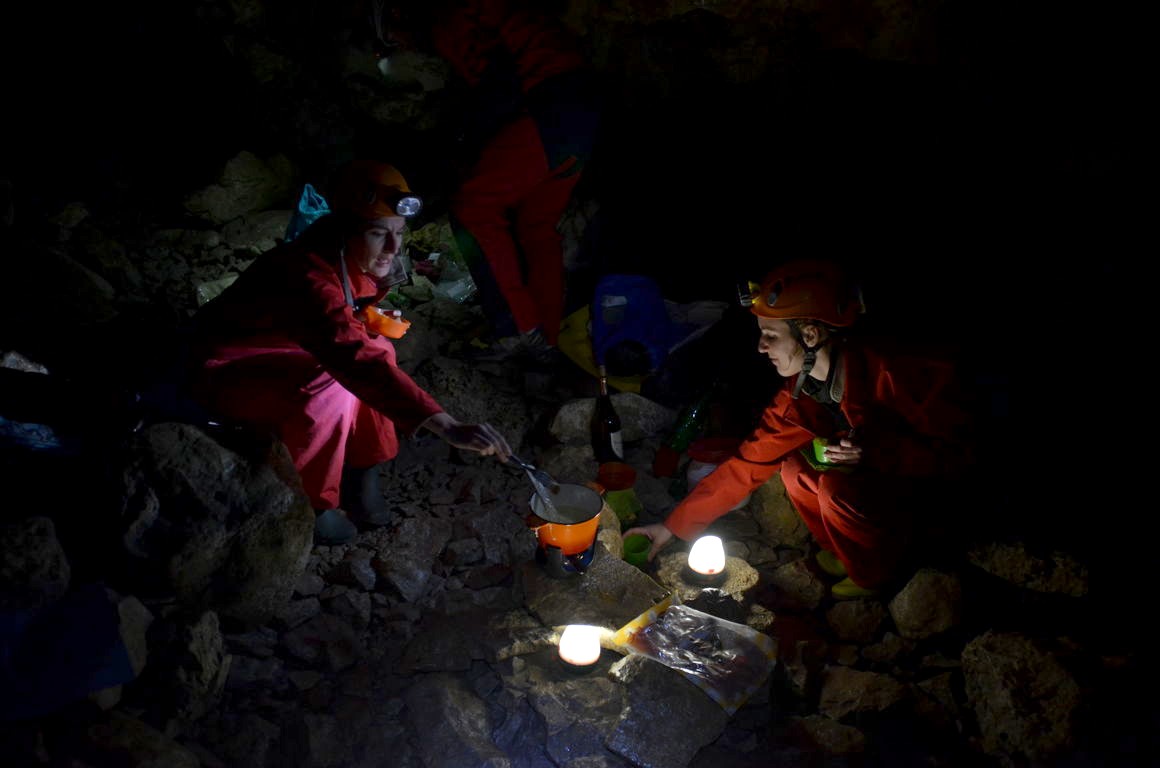 Nous avons rendez-vous avec Noa Guides, qui nous emmène dans une des grottes faciles d’accès de la région. Après un peu de crapahutage dans la grotte, nous trouvons un bon spot pour lancer la fondue.