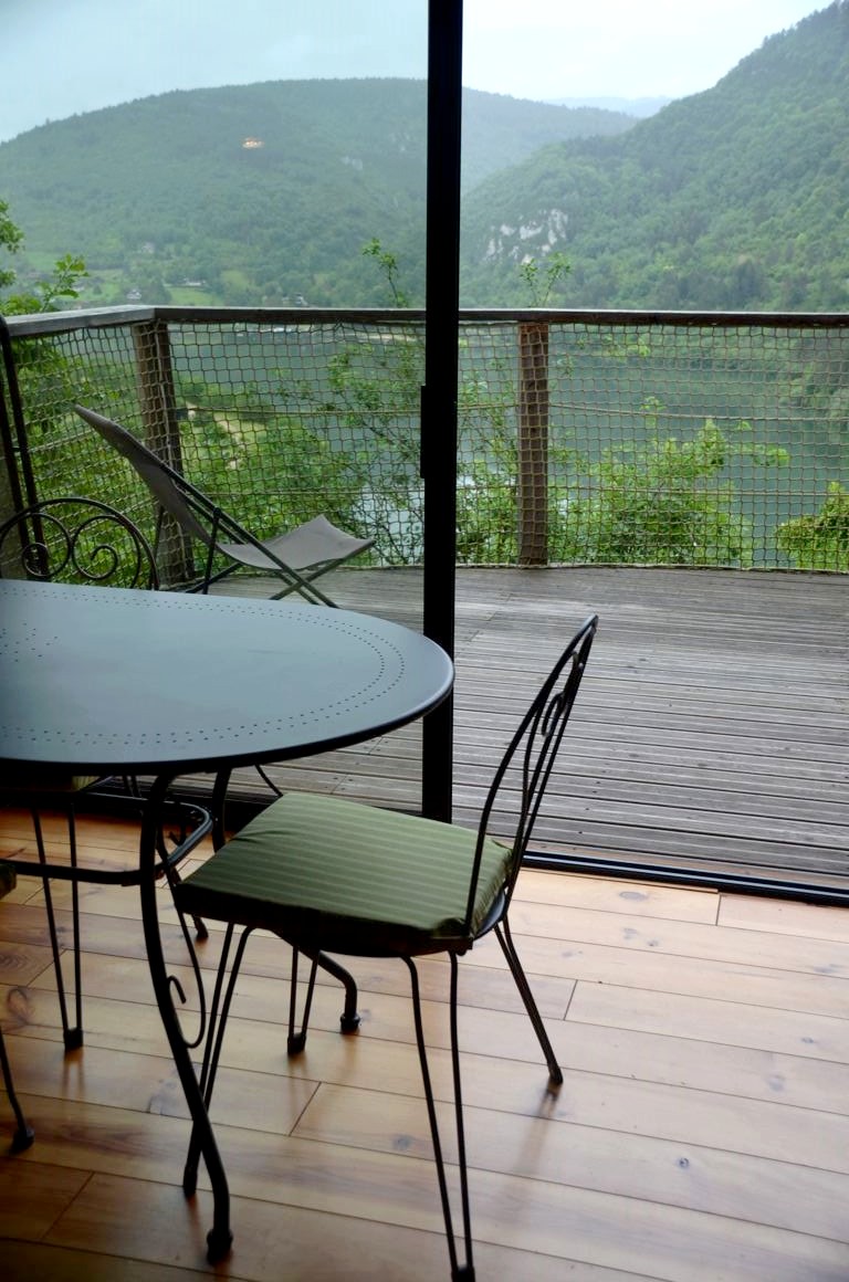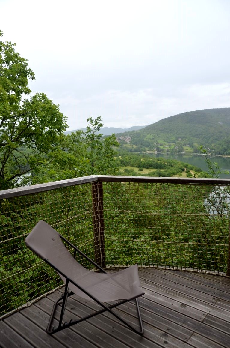 Pour notre dernière nuit dans les Montagnes du Jura, nous logeons aux cabanes et lodges du Belvédère à Serrières-sur-Ain.