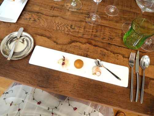 C’est donc dans un cadre totalement repensé, et plus en phase avec la cuisine alliant modernité et terroir du chef, que nous avons dégusté le nouveau menu du restaurant, qui a comblé nos papilles du début à la fin.