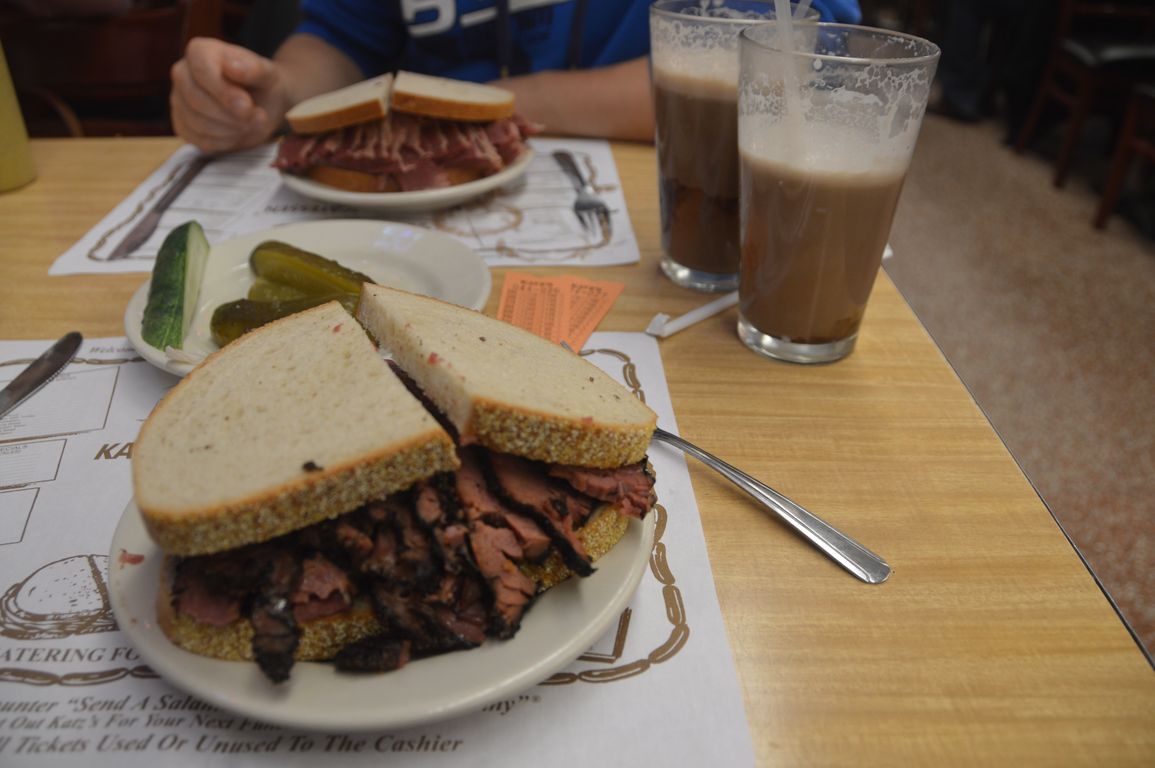 Avec tout ça, il est déjà 14h, on hâte donc le pas en direction de Katz Delicatessen, le meilleur Deli de NY pour le pastrami et les pickle vegetables (les fans de « Quand Harry rencontre Sally reconnaîtrons sans doute l’endroit). Le temps de se perdre dans Chinatown (où nous retrouvons… tenez-vous bien… le durian ! – on se demande comment les douanes l’on laissé passé…), et nos deux ventres affamés arrivent enfin chez Katz, où nous ne sommes pas les seuls à prendre un lunch un peu tardif on dirait…