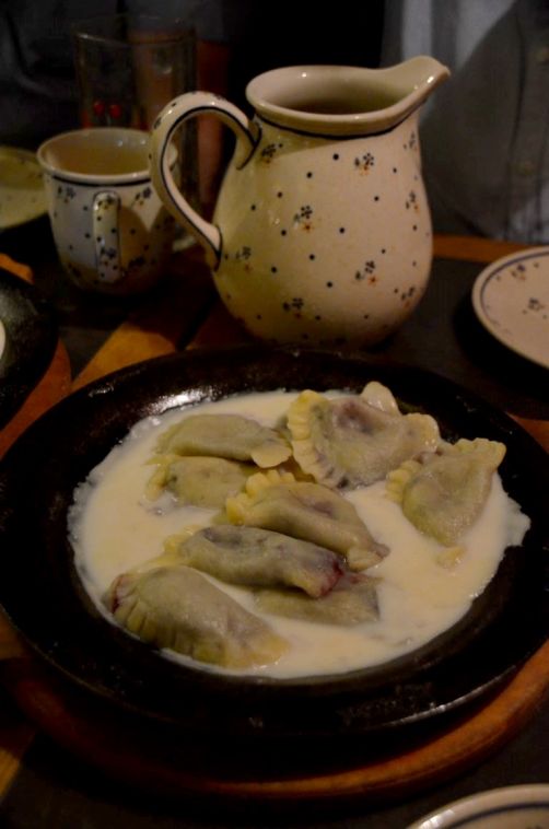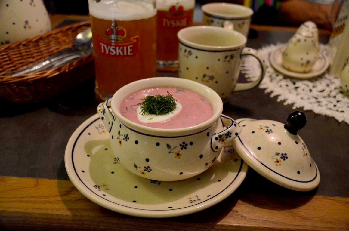A goûter en priorité : les soupes (et notamment les soupes de betterave), et les « pierogi« , ces petites ravioles polonaises traditionnelles que l’on mange aussi bien en version salée (fourrées à la viande, aux champignons, aux légumes) qu’en version sucrée (fourrées aux fruits, au chocolat…). Chaque version est servie avec une sauce différente. C’est copieux mais délicieux !
