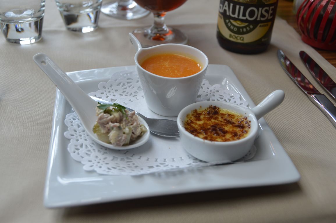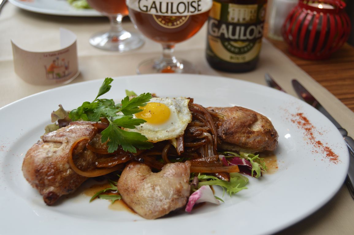 Avant d’entamer toute bonne séance de geocaching, un bon repas s’impose ! C’est ce que nous faisons à La Table d’Antonio, un charmant petit restaurant que nous avions dégoté sur le site du guide Michelin. De très bonnes portions (les cailles ci-dessous sont l’entrée, pas le plat…), des produits du terroir goûteux, mais il ne faut pas être pressé… Nous avons pris le menu et y sommes resté quasiment 3h !