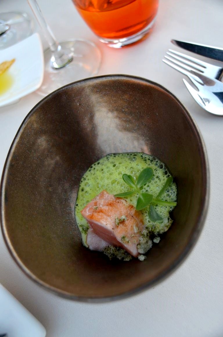 Après quelques mises en bouche, nous avons commencé le repas avec un tartare de sauvage aussi beau que bon, accompagné de courgettes croquantes, avocat et sauce aigrelette.