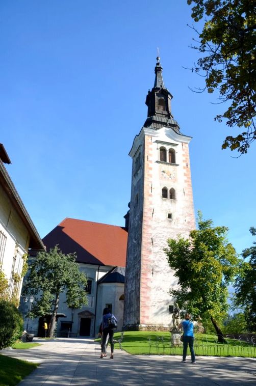 Nous arrivons juste après le départ des gros cars de touristes et nous avons la petite île presque pour nous tous seuls. L’île abrite une église néogothique du 15ème siècle, mais l’île était déjà auparavant un lieu de culte païen où était vénérée Ziva, la déesse de l’amour et de la fertilité…