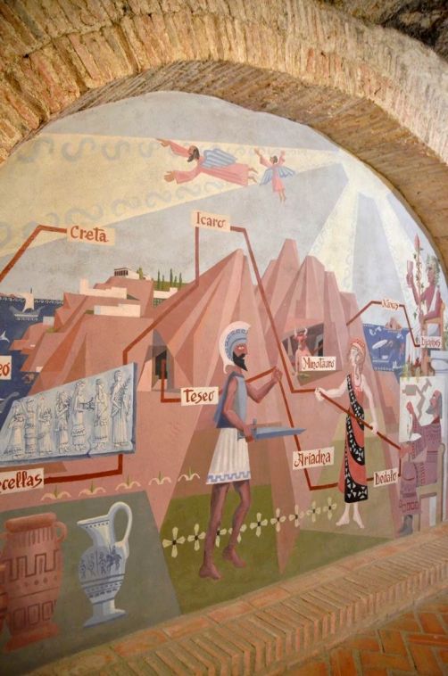 Dans le village de Rueda se cachent (et vraiment, ce n’est pas facile à trouver !) les caves originales des Bodegas Yllera, qui prennent la forme d’un labyrinthe inspiré par la mythologie grecque et plus particulièrement le mythe du Minotaure (« El Hilo de Ariadna » signifie « le fil d’Ariane »).