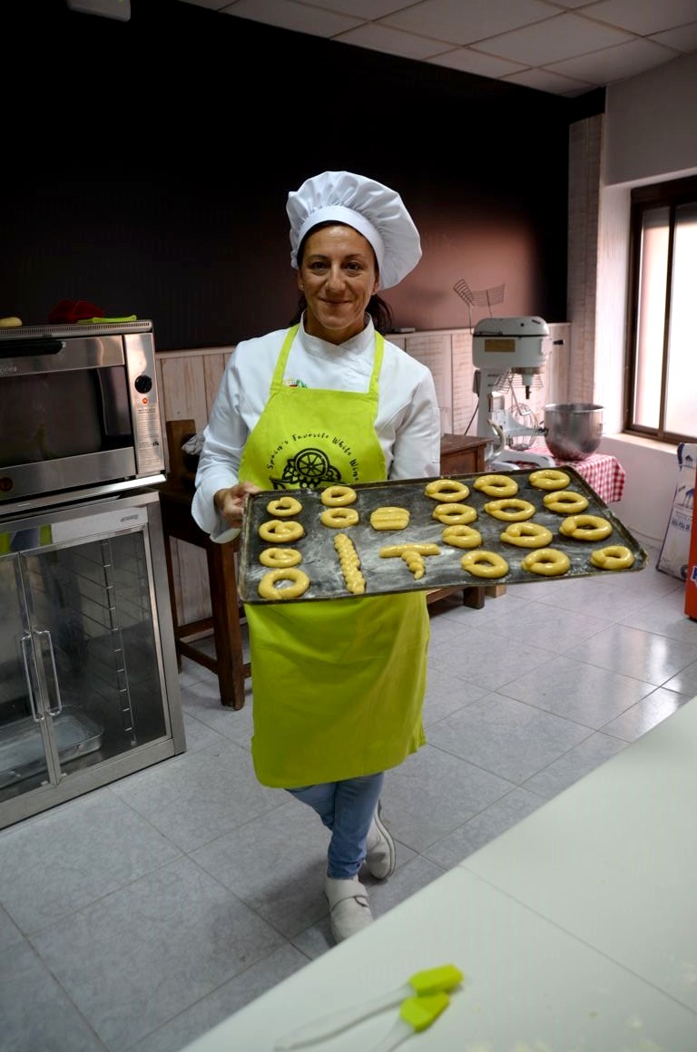 A Matapozuelos, nous avons également suivi à La Giralda de Castilla, une boulangerie-pâtisserie artisanale, un cours de pâtisserie traditionnelle (cours donné en espagnol uniquement) pendant lequel nous avons appris à préparer des pâtisseries locales à base de vin (de Rueda !) les bosquillas de vino. On y trouve aussi des empanadas au lapin à tomber par terre…