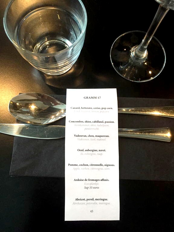 Le type de cuisine de Gramm est difficile à décrire: une cuisine bistronomique fusion est ce qui le décrit le mieux selon moi. Le chef, Nakata Kenzo, est d’ailleurs franco-japonais. Les assiettes sont élégamment présentées, c’est très « trendy » mais le goût est là, même si les quantités sont parfois très justes (mais heureusement, le menu du soir est très long).
