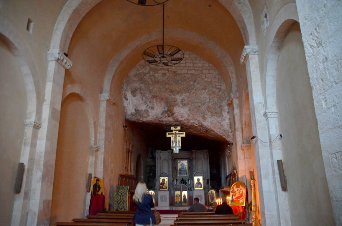 Avant de redescendre vers la côte, nous nous arrêtons près de Monte Sant’Angelo à l’Abbaye Santa Maria di Pulsano, une abbaye construite sur la roche au 6ème siècle.
