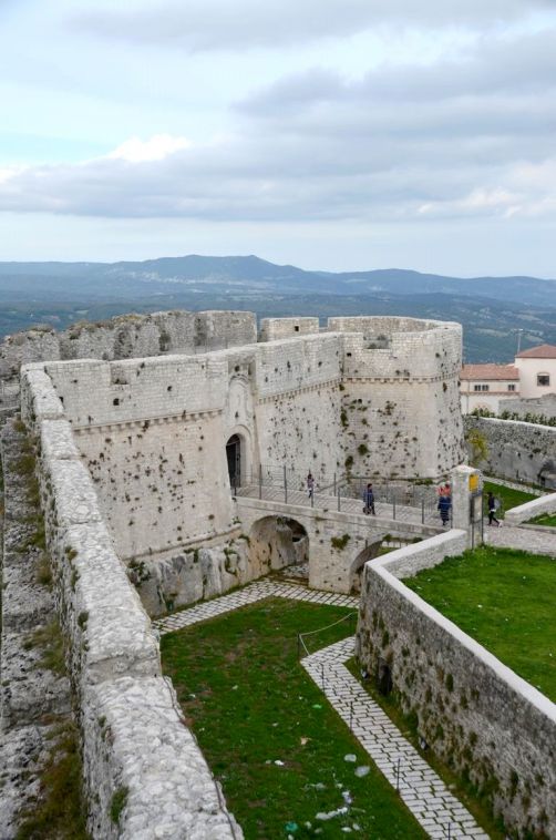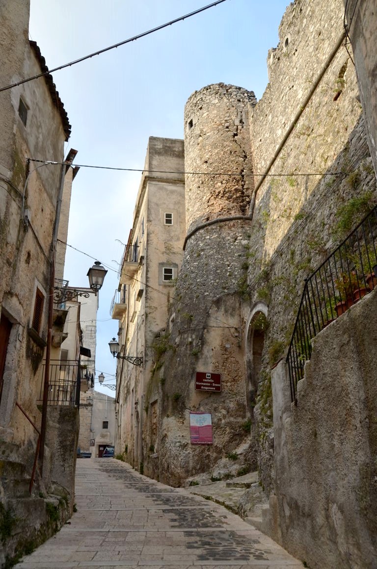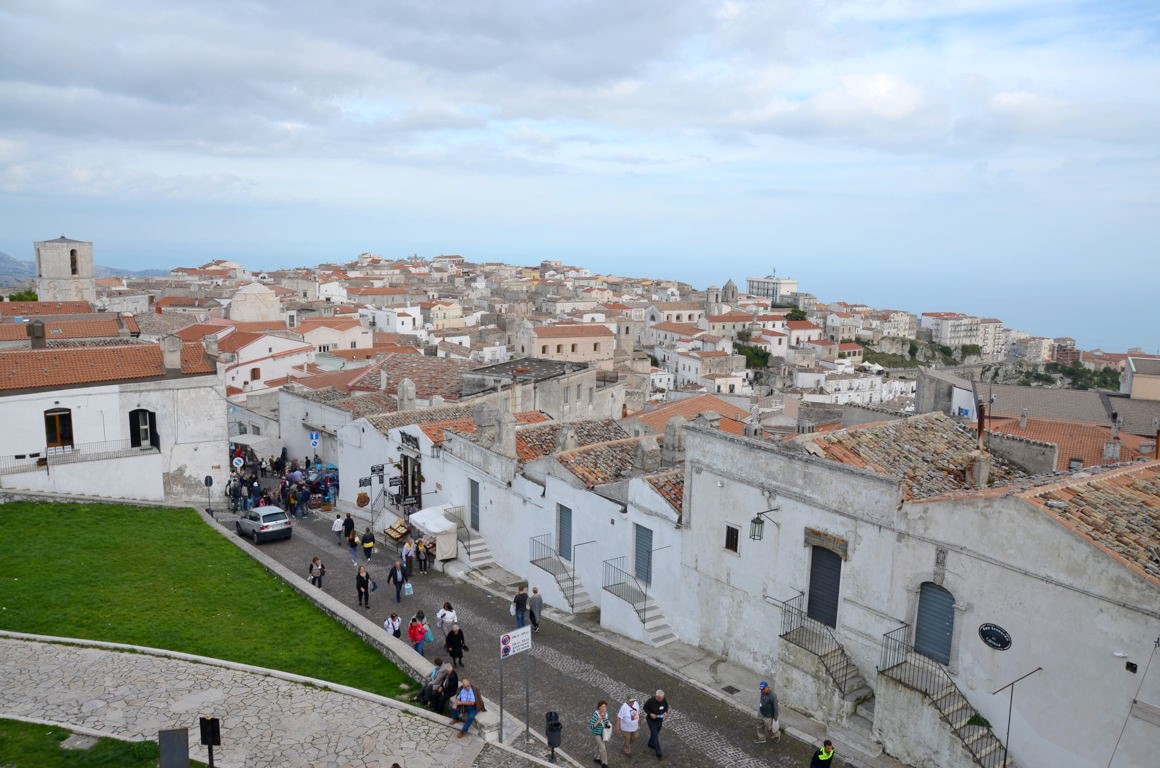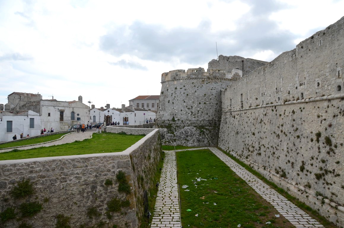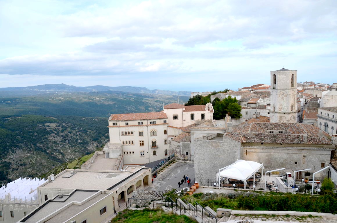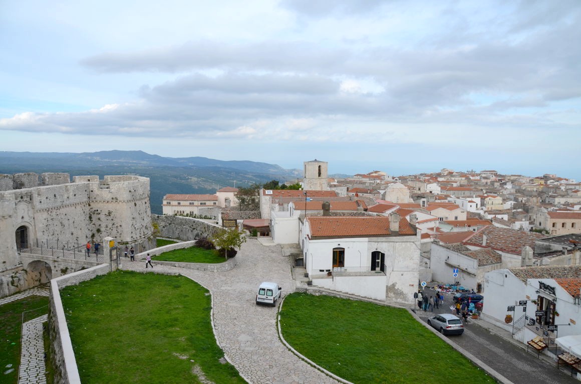 Nous commençons par visiter le quartier haut de la ville et le château médiéval de Borgo Junno, qui offre de belles vues sur Monte Sant’Angelo et les montagnes voisines.