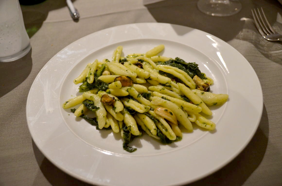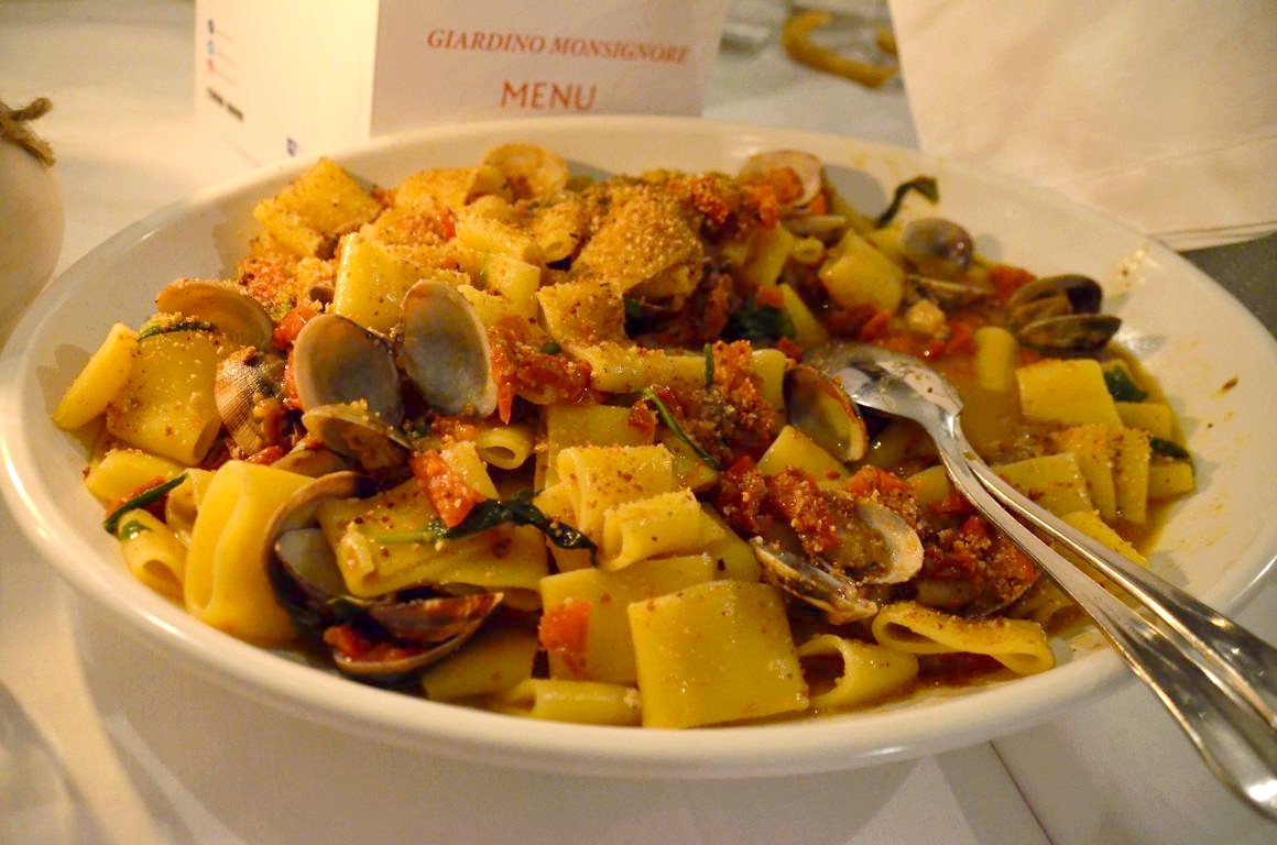Dans un cadre bucolique, au Giardino di Monsignore on déguste une cuisine copieuse avec à nouveau du très bon poisson, et surtout d’excellentes pâtes.