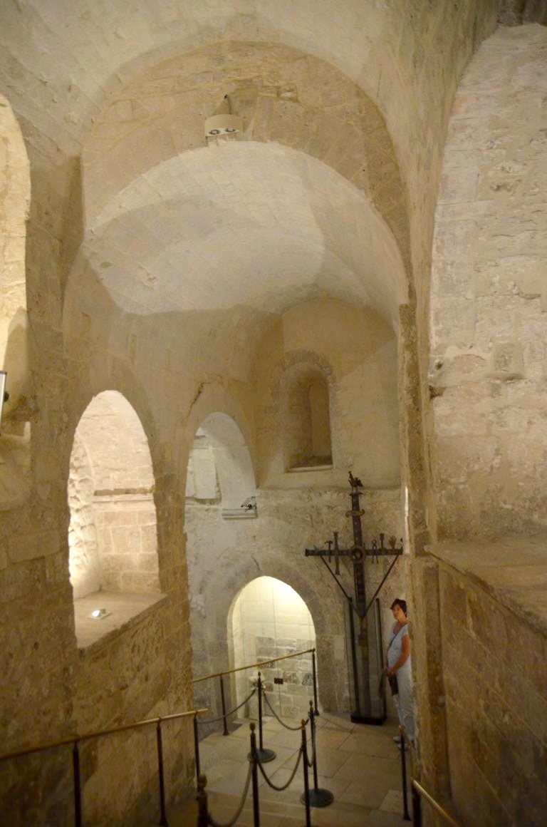 Des escaliers creusés dans la roche vous emmène à la Grotta di San Michele Arcangelo, une grotte devenue sanctuaire, car c’est ici que serait apparu l’archange Michel en 490… Les pèlerins chrétiens y viennent en nombre, comme le témoignent la multitude de petites boutiques de souvenirs.