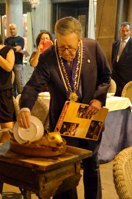 Mais le clou du repas, c’est la spécalité de la maison: le cochon de lait coupé avec une assiette (Cochinillo de Segovia asado al estilo de Cándido). Une découpe folklorique mais le cochon est tout simplement délicieux.