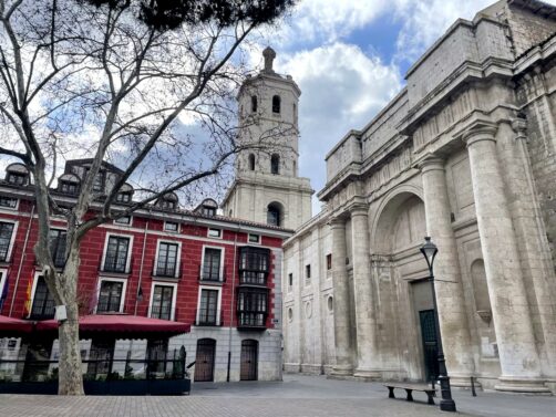 Lors de mon premier voyage, j’avais logé à l’hôtel que l’on voit à gauche sur la photo ci-dessous, à l’Hotel Zenit El Coloquio. Celui-ci se trouve juste en face de la Cathédrale de Valladolid : on fait difficilement plus central !