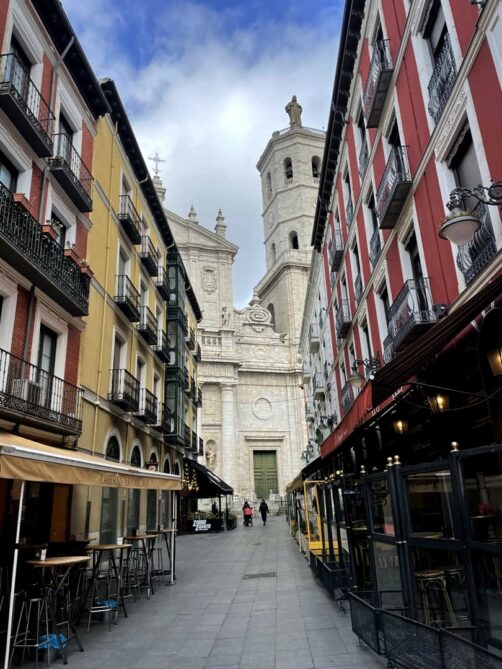 Difficile de rater l’imposante Cathédrale de Valladolid. Le plan durant sa construction au 16ème siècle était d’en fait un des plus grands bâtiments catholiques au monde. On en a les plus belles vues en s’éloignant un peu, avec les ruelles traditionnelles créant de belles perspectives sur celle-ci.