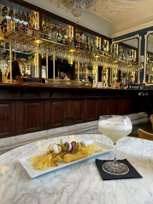 Située dans un sublime bâtiment historique, rénové avec goût, proche de la Plaza Mayor, cette adresse venait d’ouvrir lors de ma visite début 2023. On y trouve un restaurant, un bar à l’ancienne et bientôt un speakeasy. On peut déguster quelques tapas avec des cocktails classiques côté bar : l’ambiance est géniale !