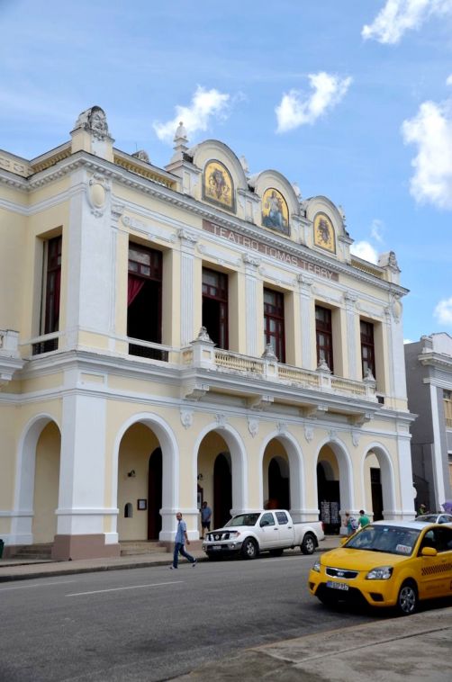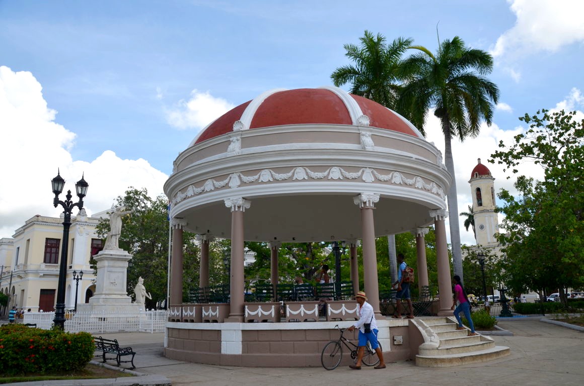 Enfin, nous finissons la visite de Cienfuegos par une balade dans le centre-ville, autour de la place principale de la ville, le Parque Jose Marti, qui est entouré de magnifiques bâtiments coloniaux et néoclassiques aux couleurs pastel. Nous visitons notamment le magnifique théâtre Tomas Terry (photos payantes…).