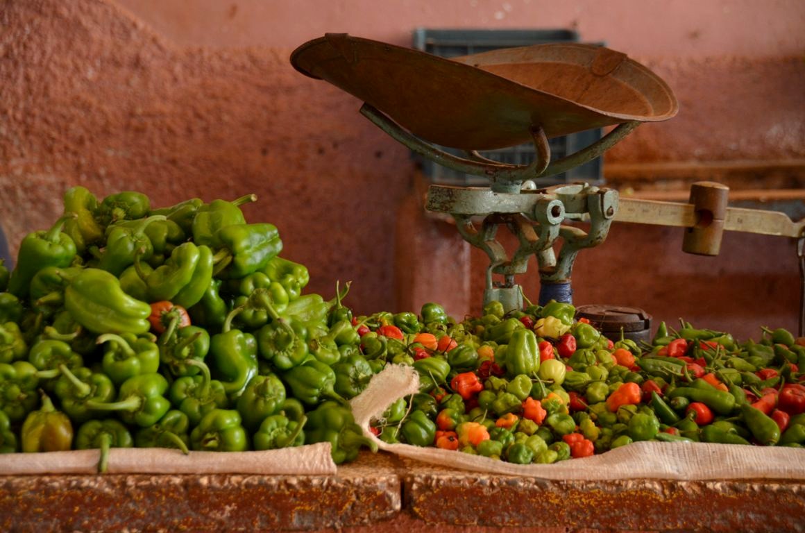 Plutôt sympa que de voir ce bel étalage de produits… même si notre estomac européen ne supporterait sans doute pas les morceaux de viande exposés dans la petite boucherie du marché !