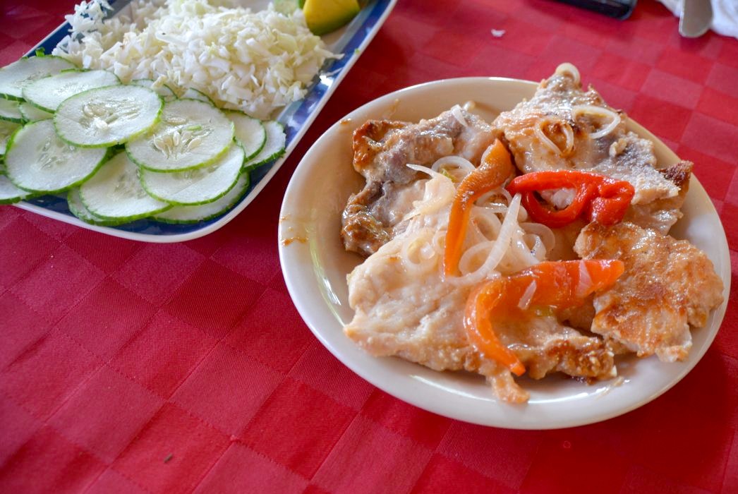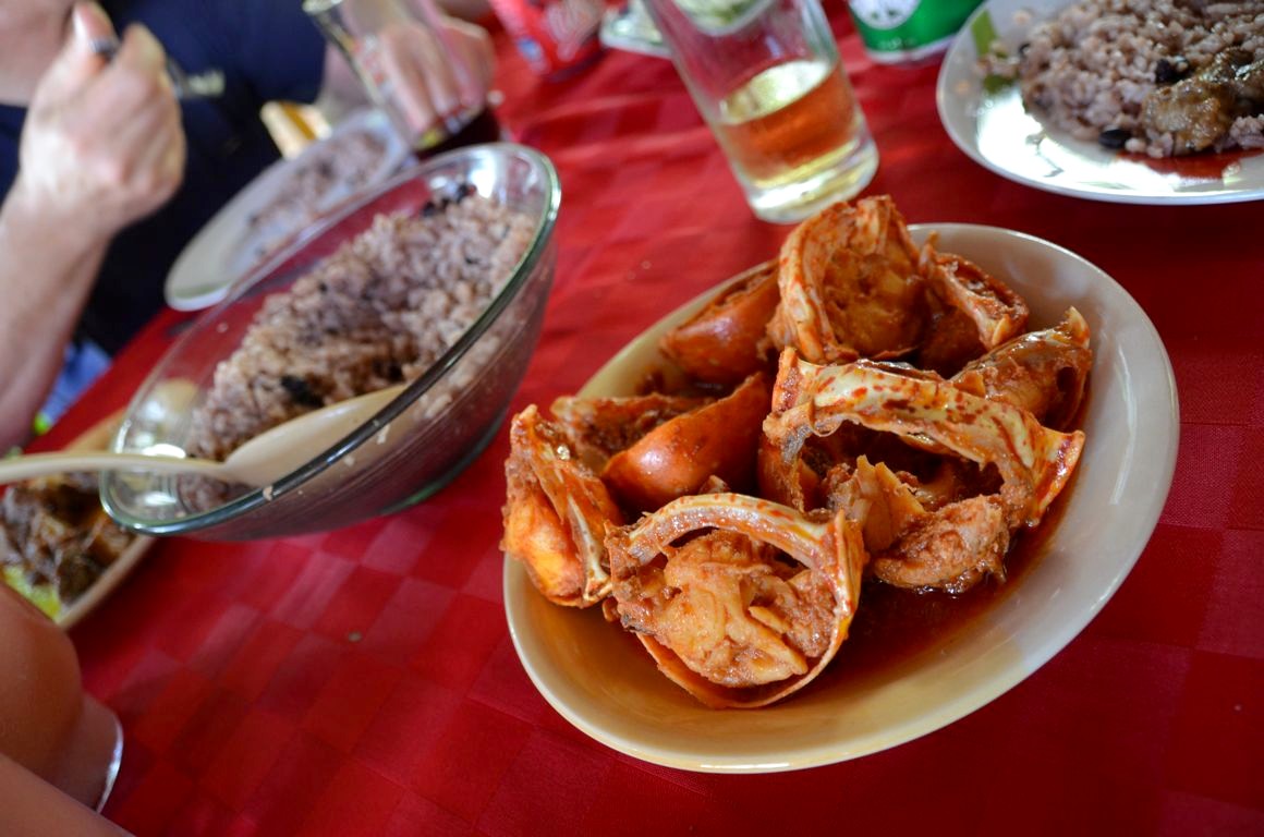 Nous arrivons juste à temps pour le lunch. Le restaurant du jour est La Finquita, un petit restaurant qui ne paie pas de mine mais nous avons pour une fois mangé quelque chose de différent : langoustes (miam miam !), crocodiles (de la ferme voisine…), crabe et même du gibier. Le tout agrémenté d’un jus de goyave frais. Un de mes meilleurs repas sur l’île !