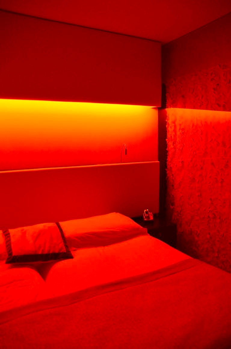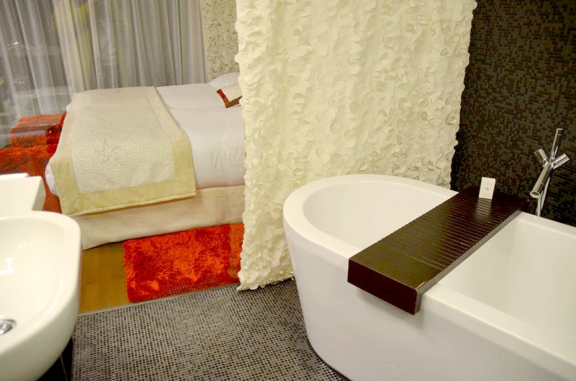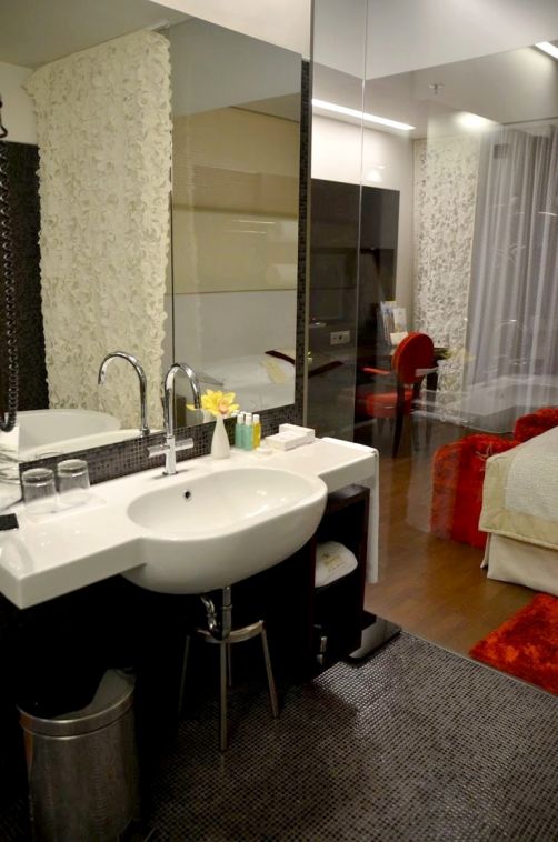 Cet hôtel 5 étoiles est l’idéal pour les couples : notre belle chambre était décorée dans les tons rouges, avec une belle salle de bain ouverte sur la chambre et… des jeux de lumière au dessus du lit (avec un mode caché pour avoir un arc-en-ciel de lumière, on a bien ri en le découvrant !).