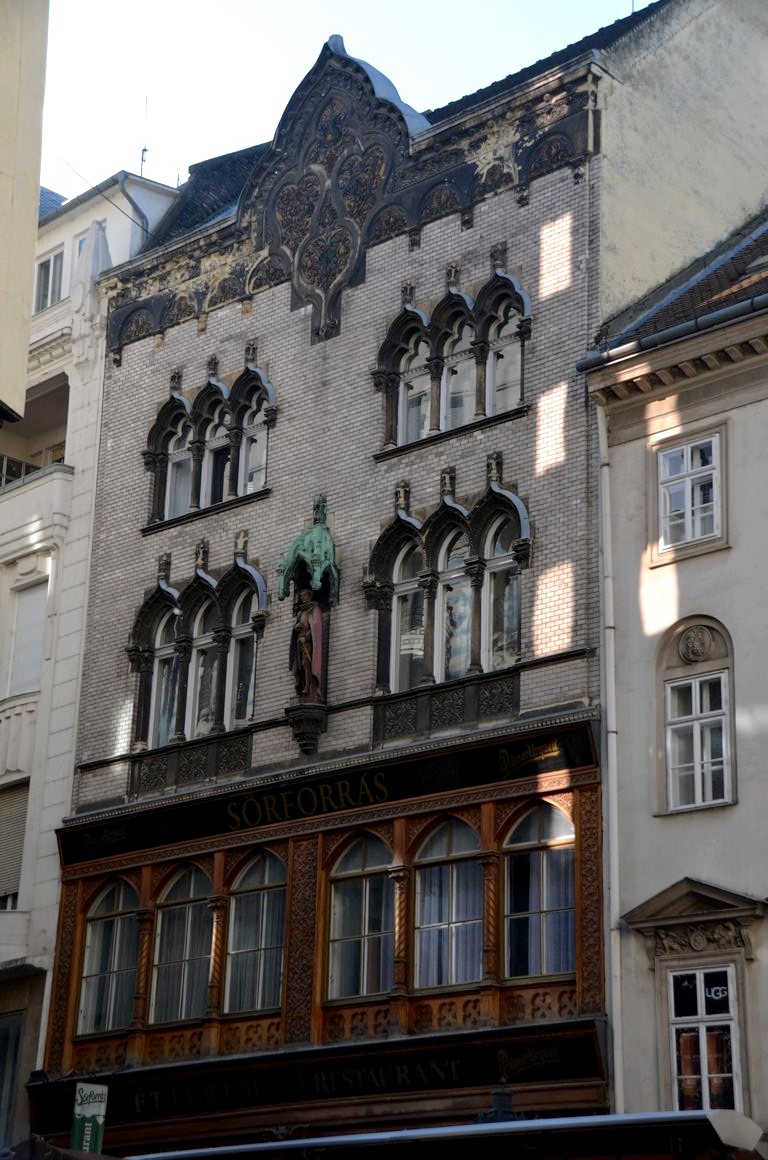 Nous avons ensuite décidé de marcher jusqu’au quartier juif (que nous allions explorer d’avantage le lendemain) en passant par quelques rues commerçantes avec de belles maisons Art Nouveau.