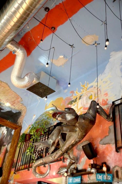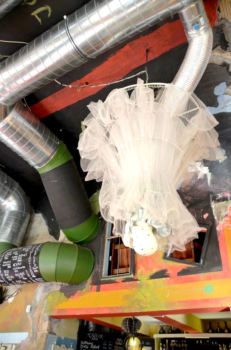 Notre premier « ruin bar » fut donc le Púder Bárszínház, un bar, restaurant, théâtre et galerie d’art, géré par les propriétaires du restaurant étoilé voisin. Un mélange qui m’intriguait beaucoup !