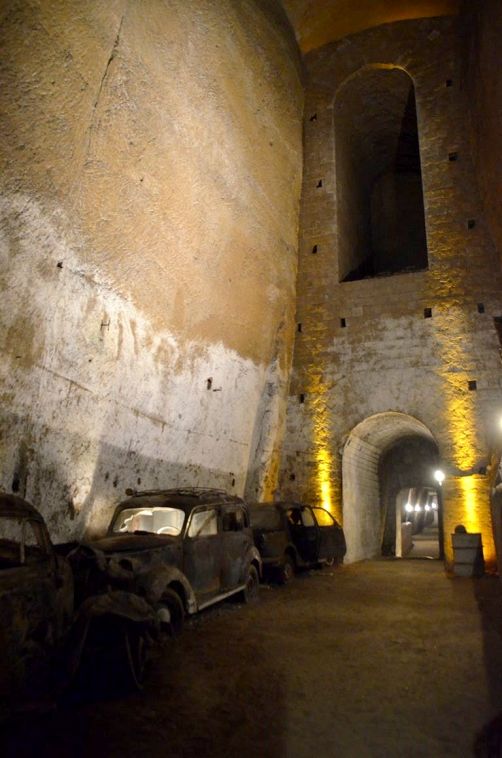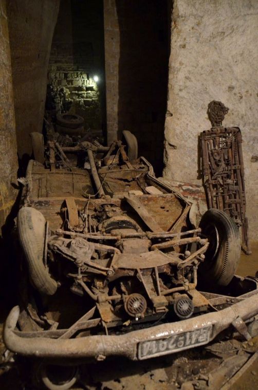 Mais la plus amusante des utilisations de ces galeries souterraines par les napolitains eut lieu après la guerre et jusque dans les années 70, lorsque la Galleria Borbonica devint un véritable cimetière pour vielles voitures, Vespa, vélos et autres objets dont la ville ne savait plus quoi faire. Bref, vous comprenez pourquoi la visite est réellement étonnante !