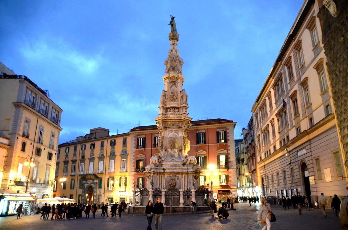 Mais Naples, ce sont également de très belles places, où les napolitains aiment se retrouver également. Mes préférées : la Piazza del Gesù (avec son étonnante Basilique du Gesù Nuovo, qui était autrefois le palais d’une riche famille napolitaine) et l’énorme Piazza Plebiscito.