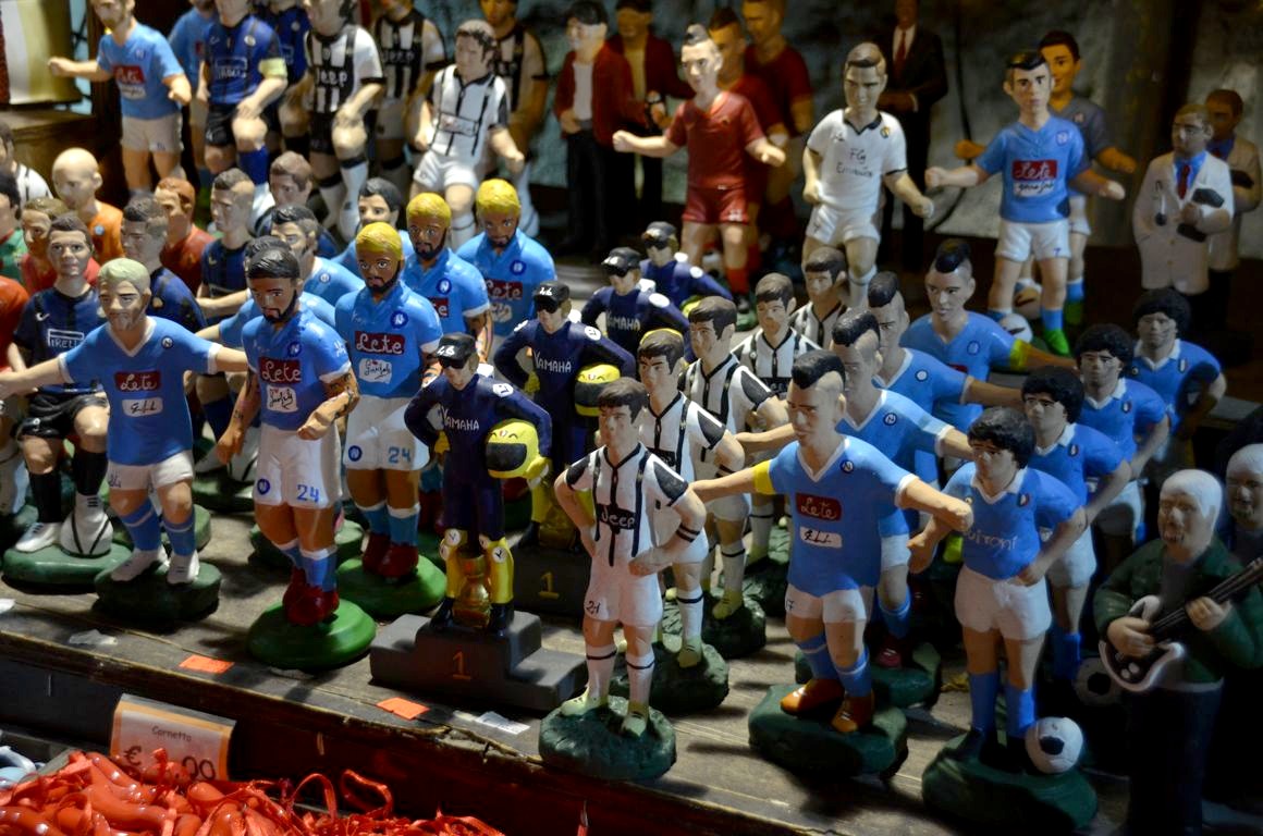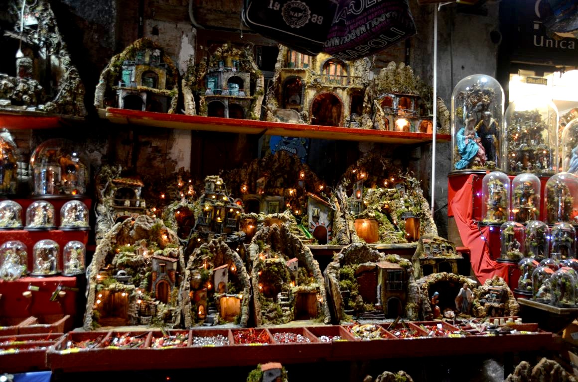 La ville de Naples est en effet réputée pour ses santons et ses crèches de Noël, et les boutiques d’artisans abondent dans la Via San Gregorio Armeno et les rues alentours (notamment Via Benedetto Croce et San Biagio dei Librai sur Spaccanapoli, la très longue artère principale en ligne droite du centre de Naples). On ne sait pas où donner de la tête !