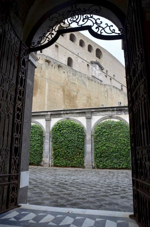 La Chartreuse impressionne dès notre arrivée, puisqu’elle se situe au sommet de la colline de Vomero, d’où l’on peut admirer une belle vue sur le centre de Naples et le Vésuve, même si le ciel était nuageux ce jour-là.