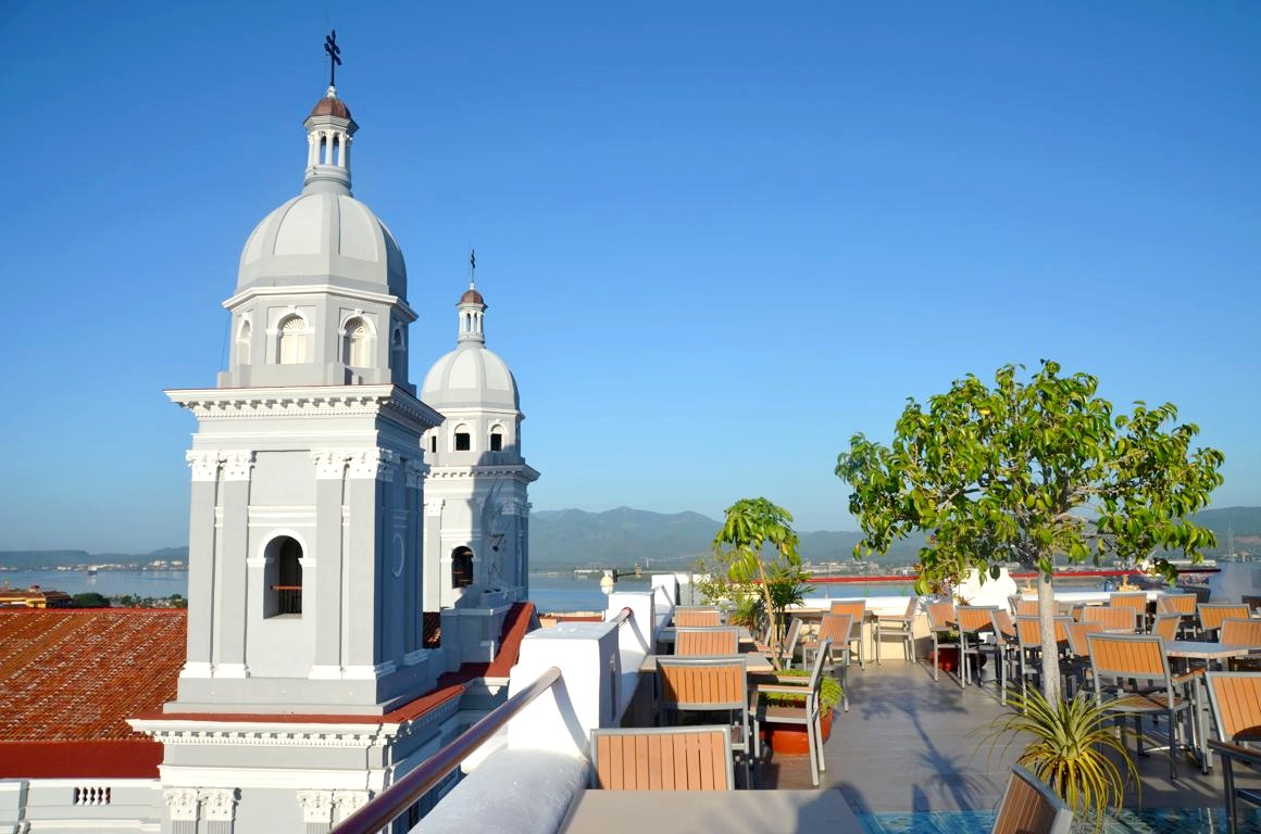 Mais le top du top, c’est la terrasse panoramique au dernier étage de l’hôtel, avec une vue à presque 360 degrés sur Santiago de Cuba !
