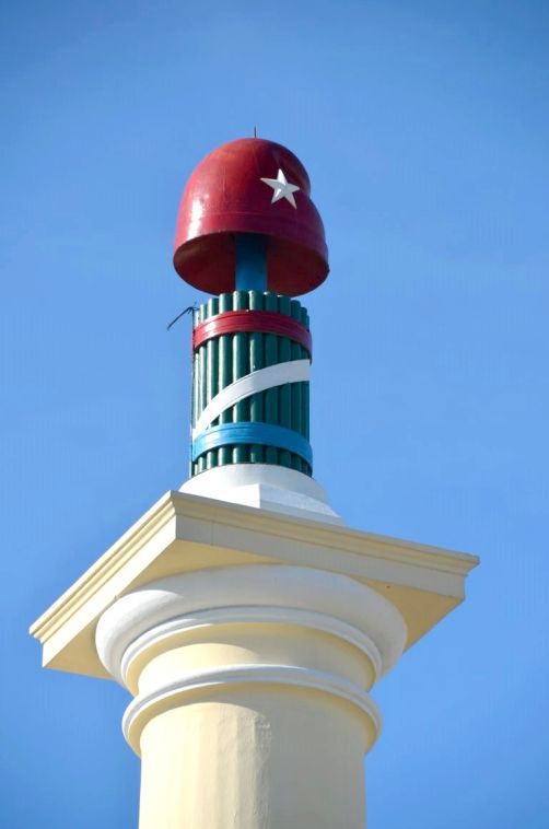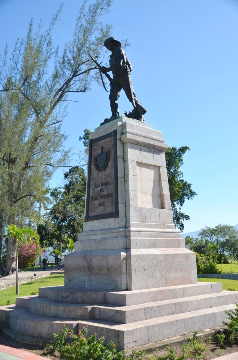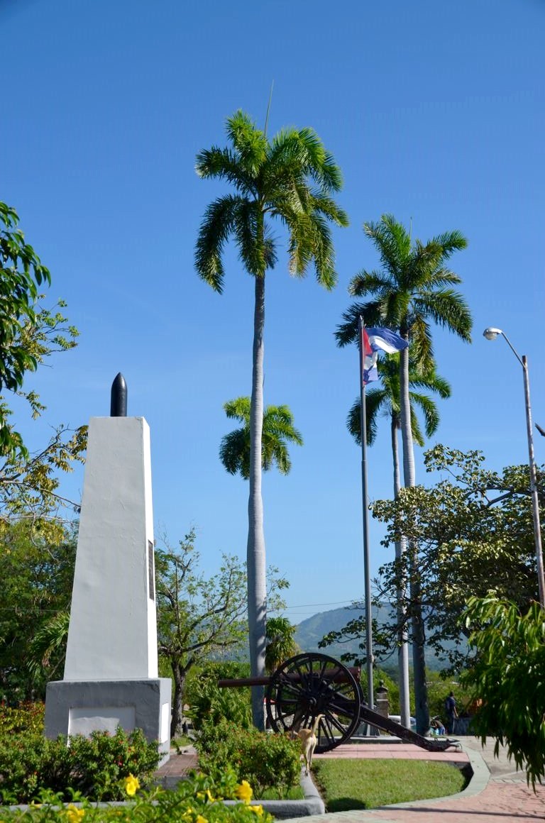 Comme toutes les villes cubaines, Santiago a sa place de la révolution, ici surmontée par la statue d’un héros national, Antonio Maceo, entouré de machettes…