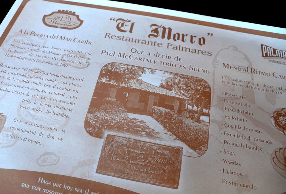 A côté du fort, nous avons mangé au restaurant El Morro, qui a accueilli Paul McCartney lors de son voyage à Cuba. On ne saurait pas le rater, tous les sets de table arborent fièrement : « Paul McCartney a dit que tout était bon » (mais permettez-moi de douter de cette citation… oups !).