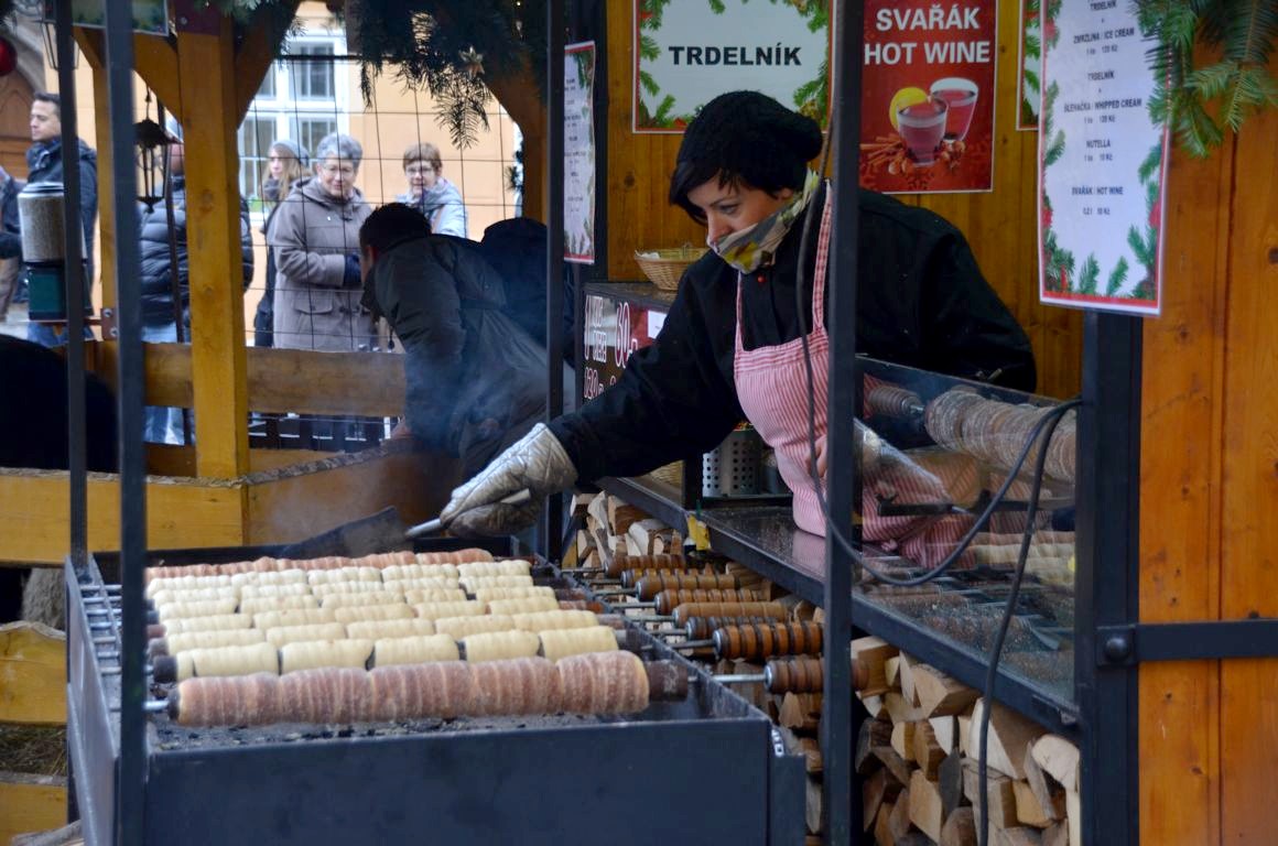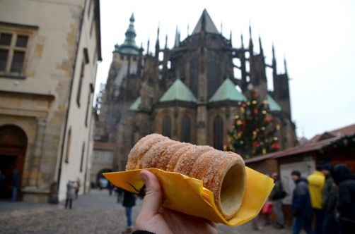 Le trdelník est la street food par excellence l’hiver à Prague (mais je l’avais déjà vu en Hongrie !). J’ai enfin goûté à ce petit pain sucré cuit « à la broche » au dessus de braises et moi qui ne suit pas très sucré j’ai adoré !