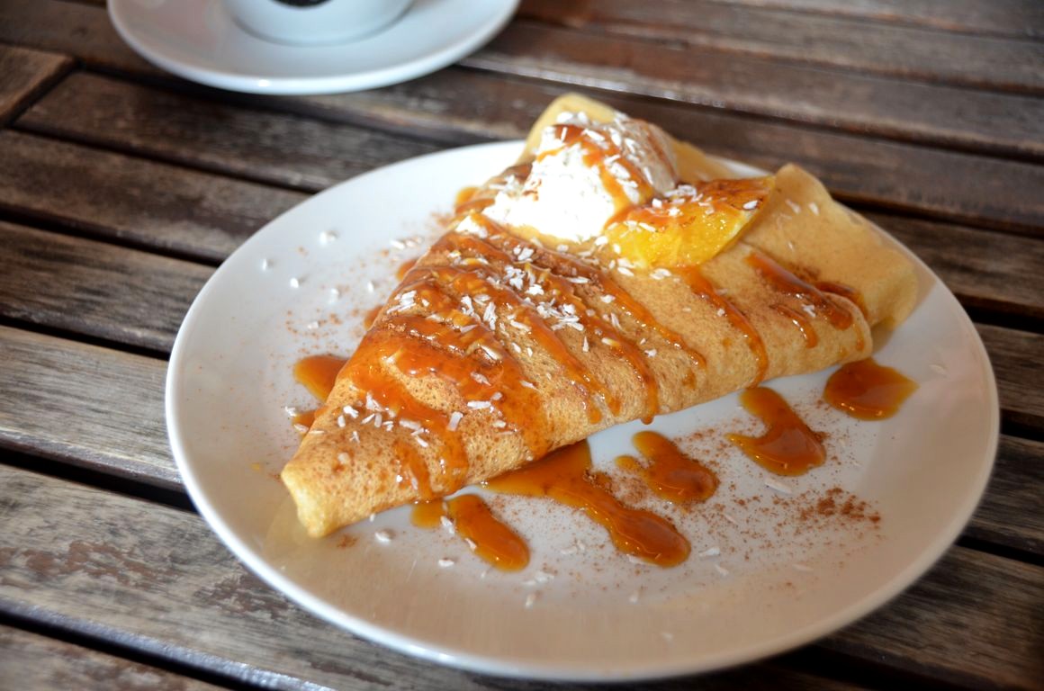 Comme leurs cuisines ne sont pas encore ouvertes, le café fait venir pour l’instant d’autres cuisiniers dans leur « pop up kitchen ». Lors de notre passage, c’était des crêpes au caramel à la brésilienne qui étaient préparées. Accompagnées d’un bon chai latte, c’était la pause parfaite !